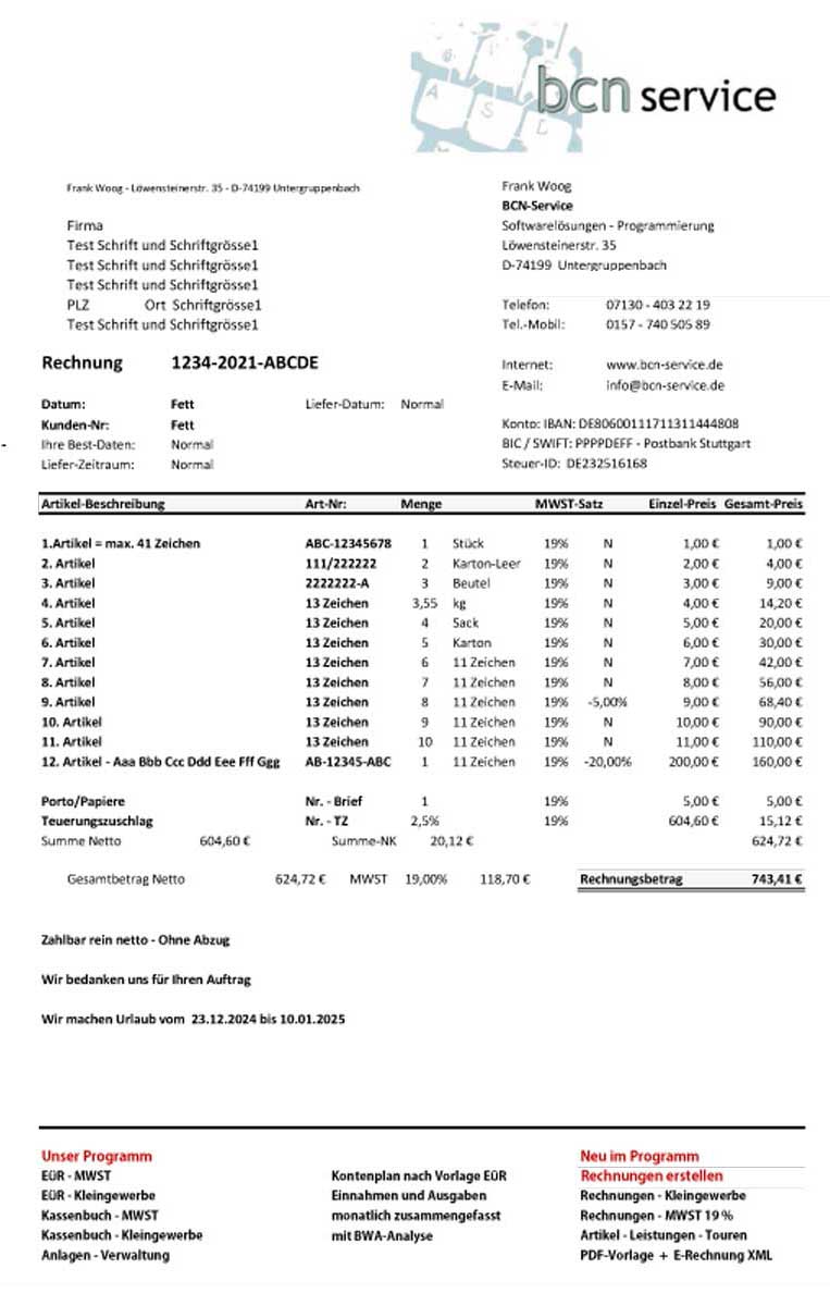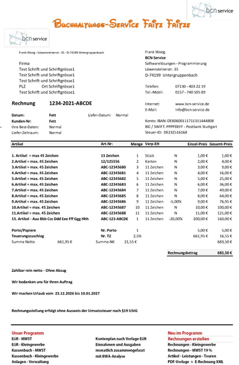 Rechnungen erstellen - mit MWST 19% Wenn Sie Artikel Anbieten und Verkaufen Es wird Rechnung als PDF-Vorlage und Rechnung im XLM-Format erstellt Bitte vorher die INFO zu E-Rechnung Lesen