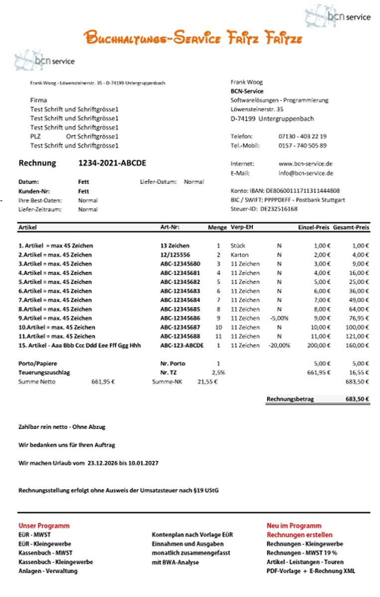 Rechnungs-Erstellung - PDF-Vorlage und E-Rechnung im XML-Format