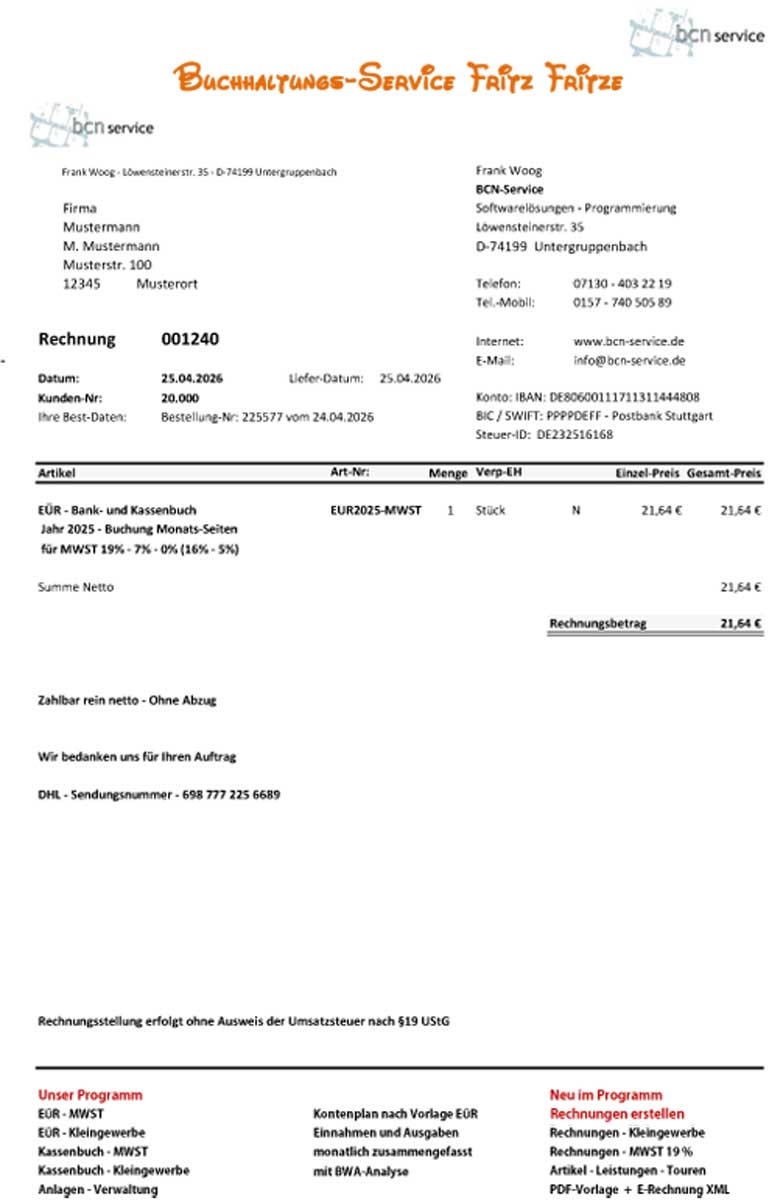 Rechnungs-Erstellung - PDF-Vorlage und E-Rechnung im XML-Format